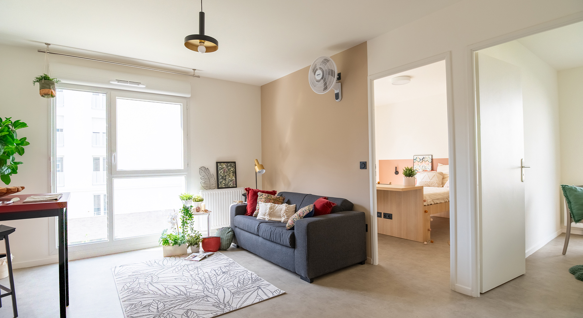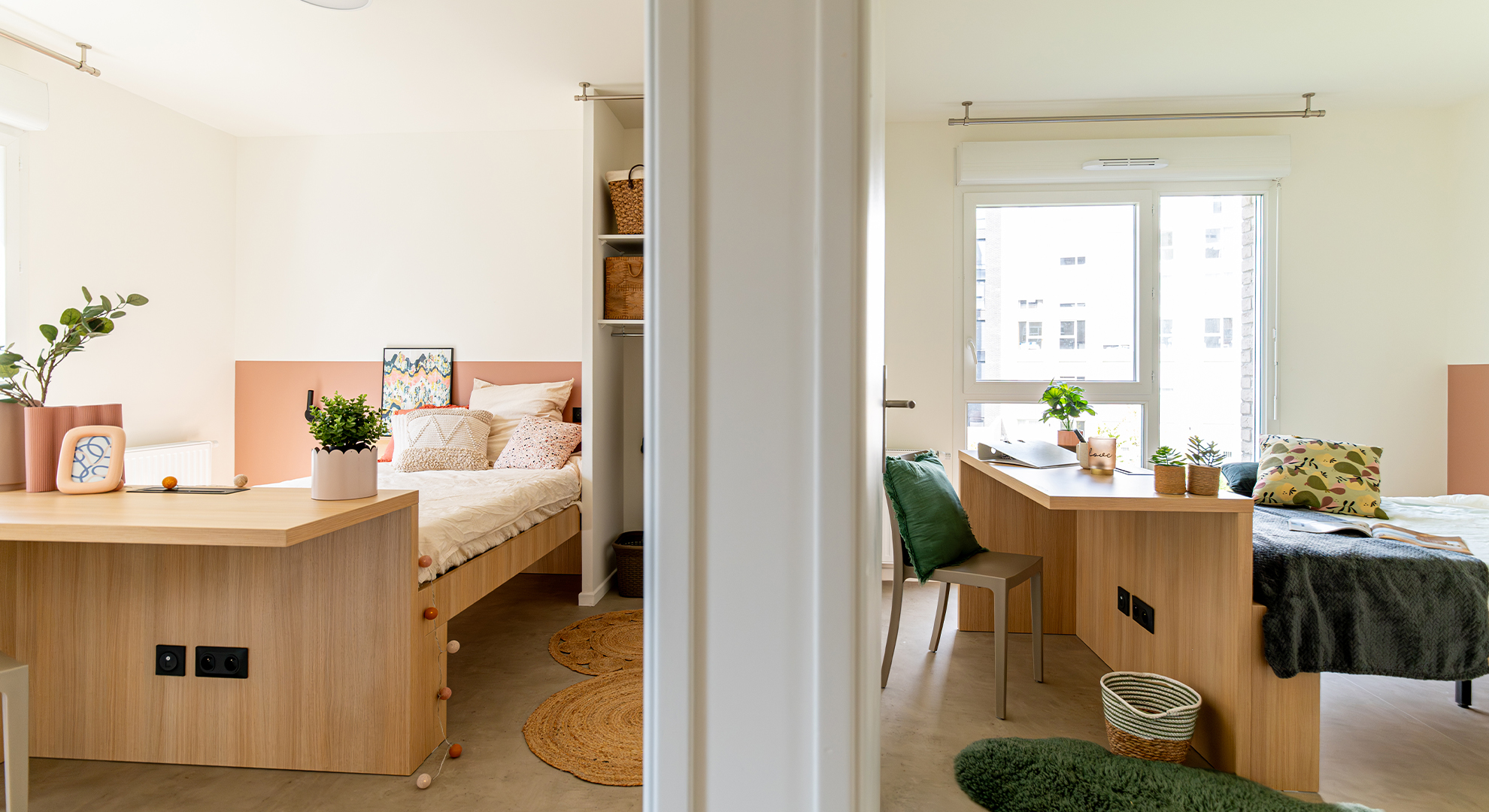 - Les appartements à partager : nos T3 possèdent 2 chambres privatives avec un espace de vie à partager.