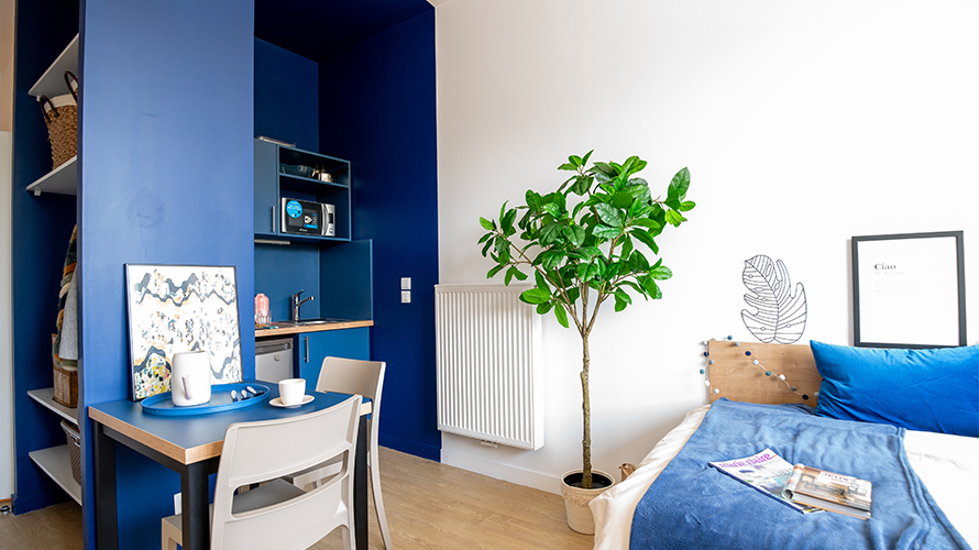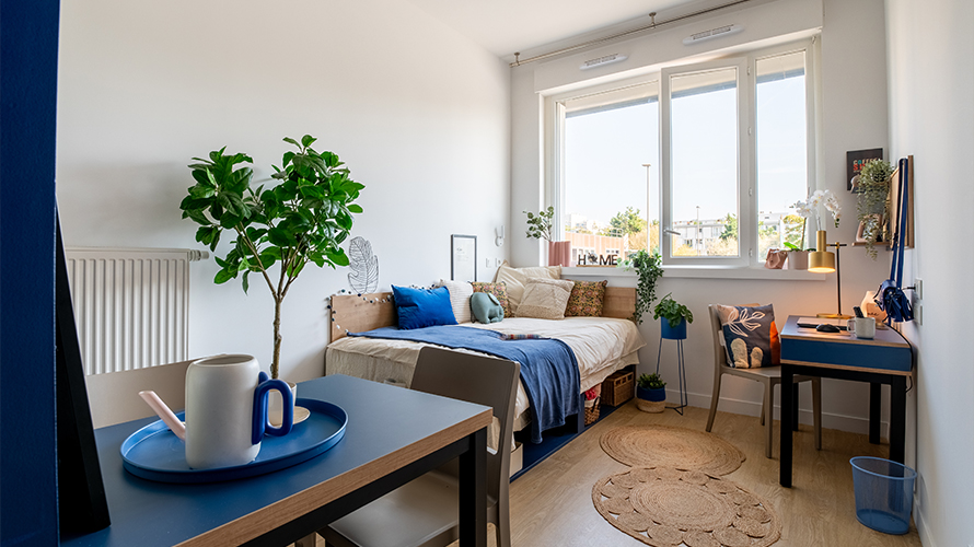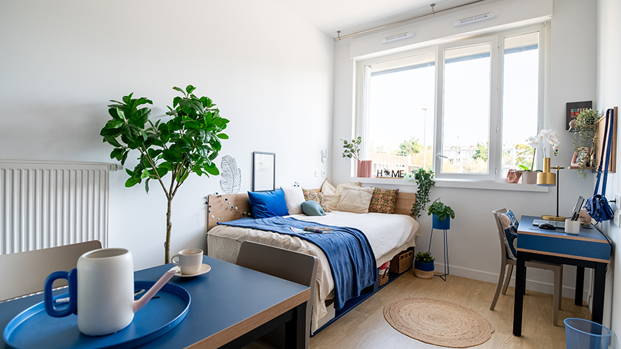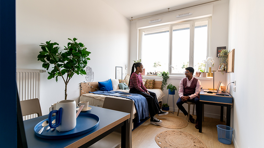 - Les appartements à partager : nos T3 possèdent 2 chambres privatives avec un espace de vie à partager.